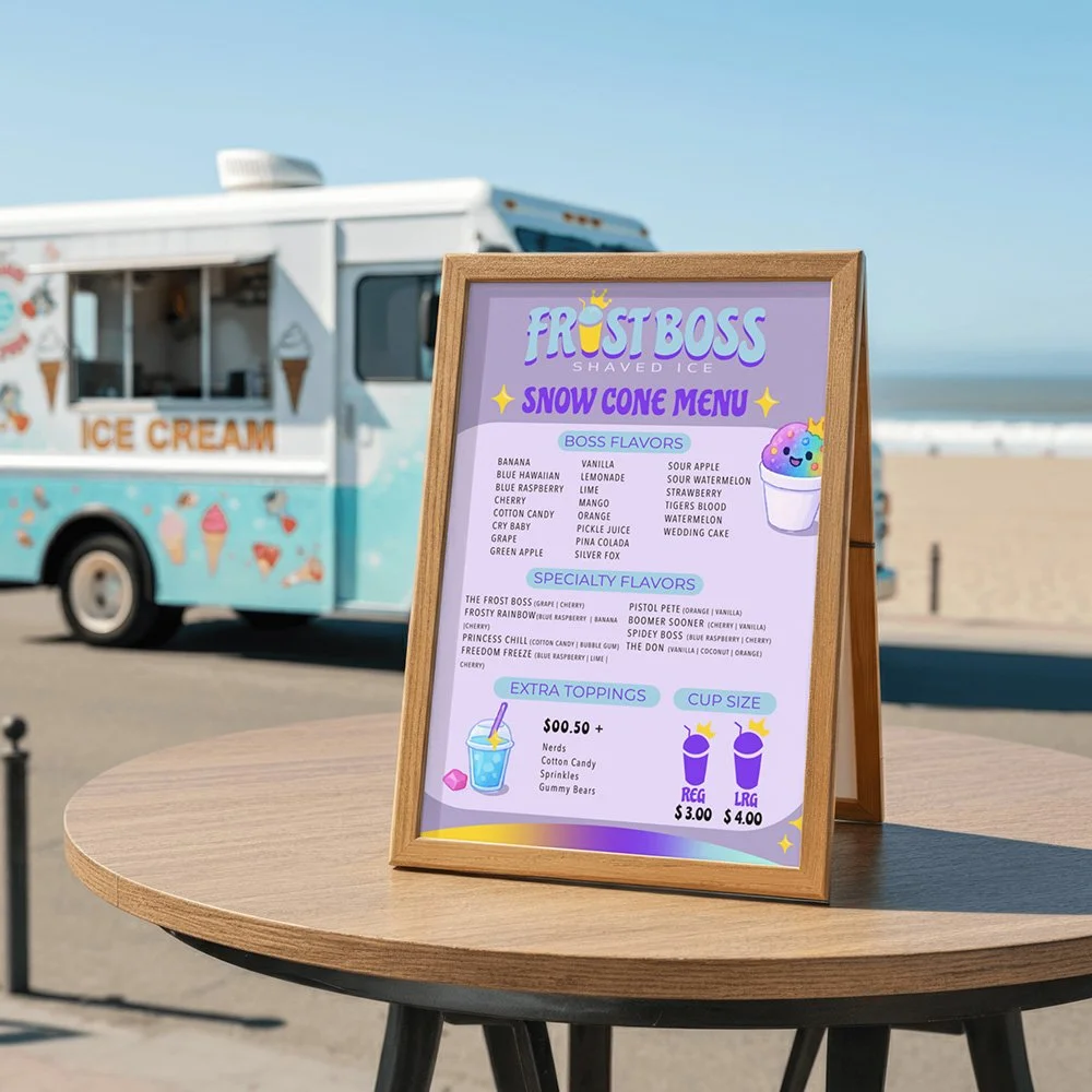 FrostBoss is a bold, modern brand created for a frozen treats business that blends fun with functionality. The brand identity captures a playful yet confident personality, appealing to families and young audiences while standing out in a competitive market. With a fresh logo, cohesive visual direction, and vibrant branding, FrostBoss positions itself as both approachable and memorable in the frozen dessert space.